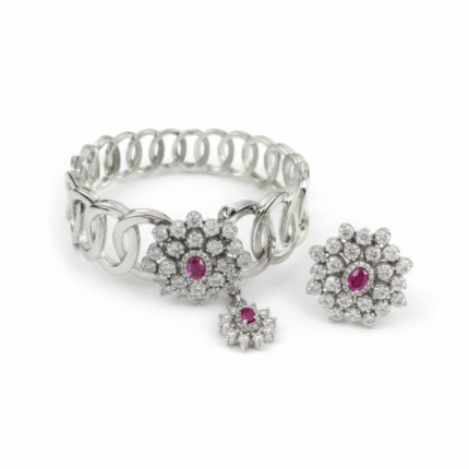 Available in Rose Gold plating for a warm, feminine touch and Rhodium plating for a sleek, timeless shine, this ring blends beautifully with both ethnic and western wear.
