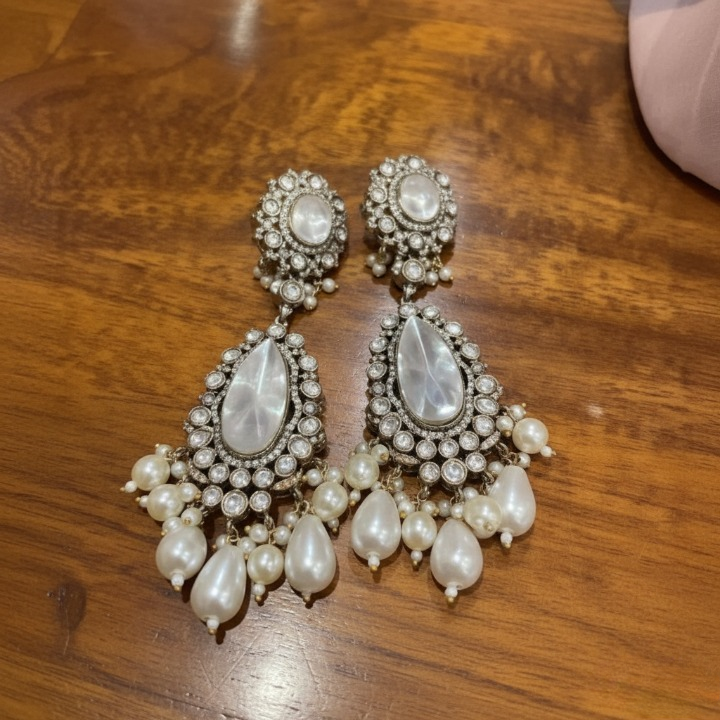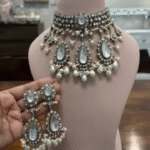 Adorned with Moissanite Polki, CZ diamonds & pearls