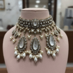 The Ameyaa Polki Choker Set pairs beautifully with bridal lehengas, silk sarees, and festive ensembles, making it a versatile and heirloom-worthy addition to your jewelry collection.