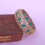 Elevate your jewelry collection with this stunning Antique Gold Plated Kundan Bracelet, designed to bring traditional artistry with a touch of elegance. Crafted from durable silver, this bracelet is adorned with that enhance its royal appeal.