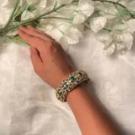 The embellished finish gives it a luxurious charm, perfect for pairing with ethnic as well as Indo-western outfits. With a weight of 47 g, it offers a premium feel, while the secure lock type closure ensures ease of wear. Measuring 7.3 cm in length and 2.2 cm in width, this bracelet is a statement piece that makes you stand out at weddings, festivals, and special occasions.