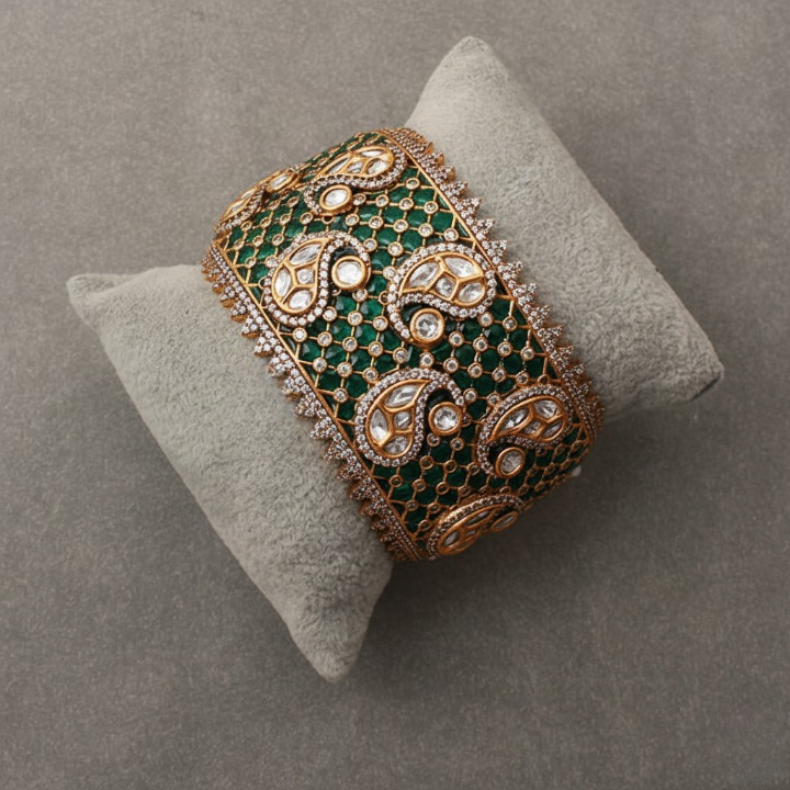 The openable design ensures easy wear and removal. This bracelet provides a comfortable yet statement-making fit. Perfect for weddings, festive occasions, and cultural celebrations, it adds a regal touch to any ensemble.