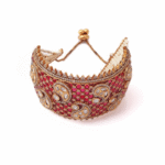 Add a touch of regal charm to your ethnic collection with this Antique Gold Kundan Bracelet. Crafted from a sturdy silver and plated with antique gold, the bracelet is intricately adorned with Kundan and stones for a sparkling, embellished finish.