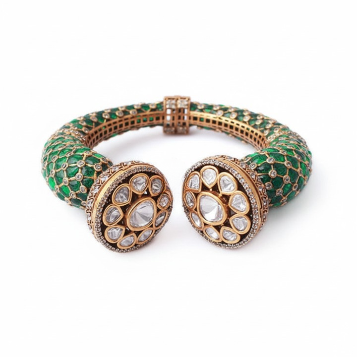 Designed for both elegance and ease of wear, the bracelet is openable, allowing a comfortable fit. It is substantial enough to create a bold impression while remaining stylish for festivals, weddings, and special occasions.