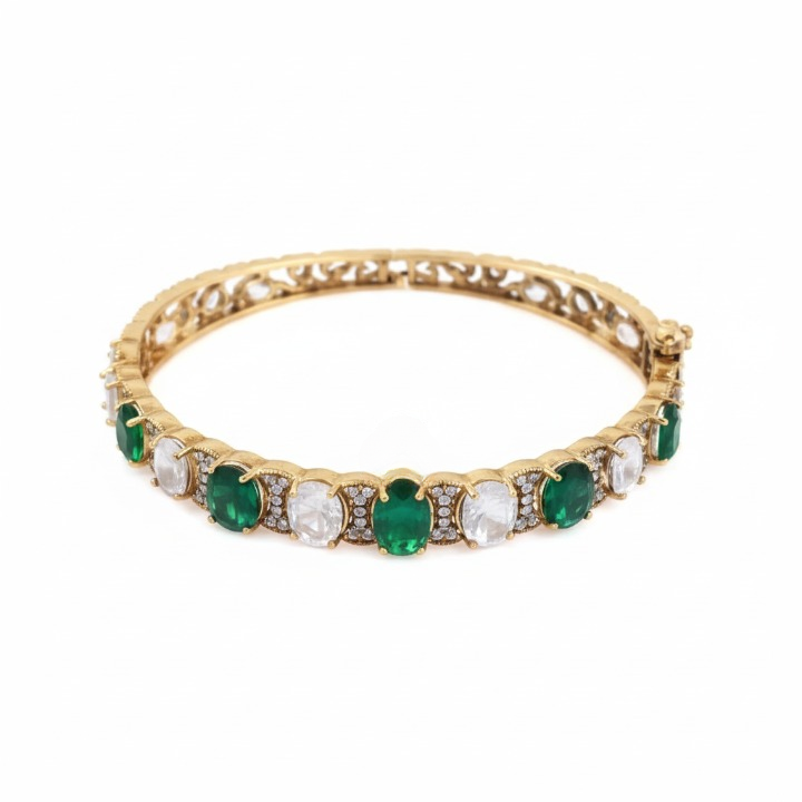 This bracelet is lightweight and comfortable for long wear. A secure lock closure ensures a perfect fit, while the intricate embellished finish makes it a timeless jewelry piece to pair with sarees, lehengas, or ethnic dresses.