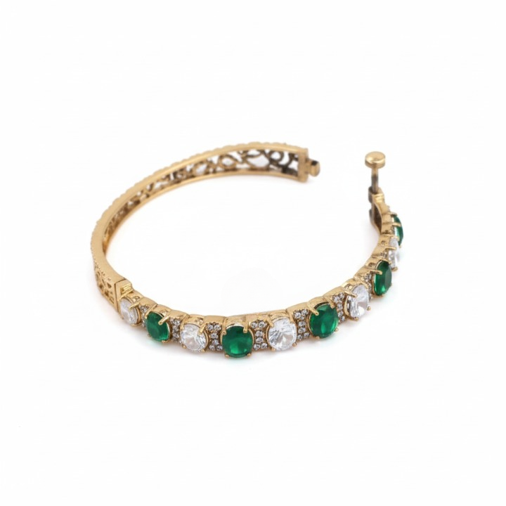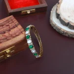 Bring a royal charm to your ethnic look with this exquisite antique gold plated bracelet, crafted from a durable silver Embellished with Kundan and imitation stones, the bracelet features a traditional yet elegant design that complements festive and wedding outfits perfectly.