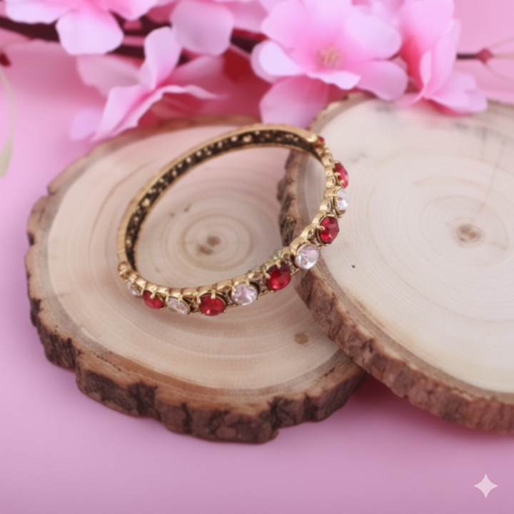Elegant antique gold plated Kundan bracelet crafted from silver. Lightweight (14 g), embellished design, size 2.4 – ideal for weddings, festivals, and gifting.