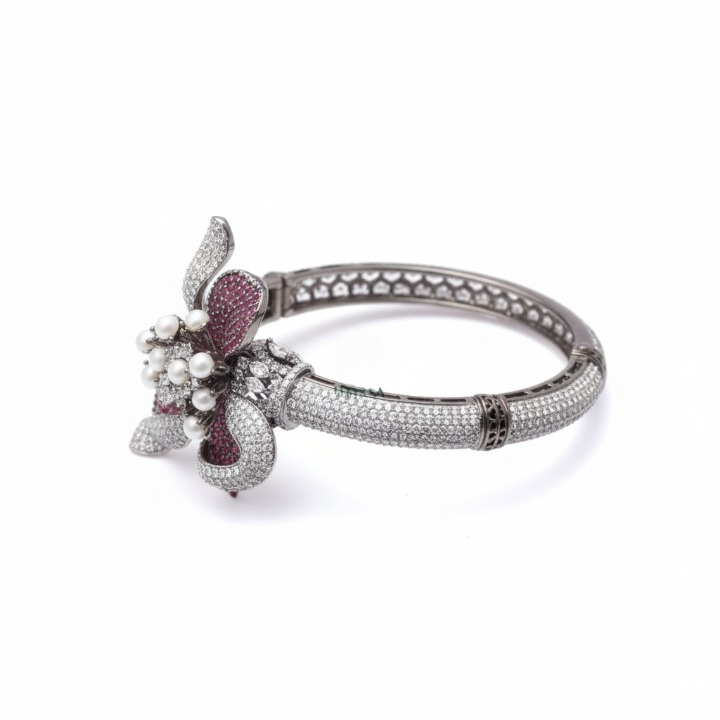 Make a bold statement with this Black Rhodium Embellished Bracelet, crafted from durable copper alloy. Featuring CZ and imitation stones, the intricate embellishments give it a luxurious and modern appeal.
