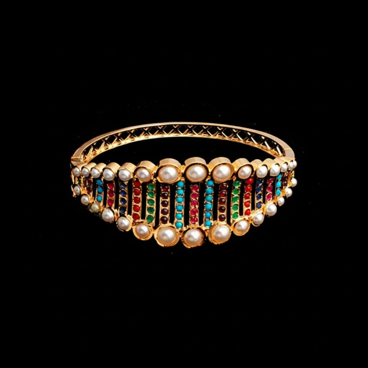 The bracelet has a length of 5.3 cm, width of 2.5 cm, and weighs 16g, making it lightweight yet visually striking. Equipped with a secure lock, it ensures a comfortable and safe fit. A perfect accessory for traditional attire or contemporary outfits seeking a regal touch.