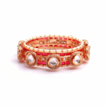 Enhance your jewelry collection with this Gold Kundan Bracelet, meticulously crafted from high-quality silver and plated with glimmering gold. Adorned with Kundan and stones, this bracelet showcases a delicately embellished finish, perfect for adding a touch of sophistication to any outfit.