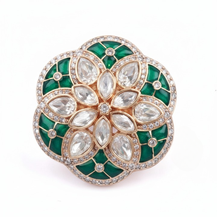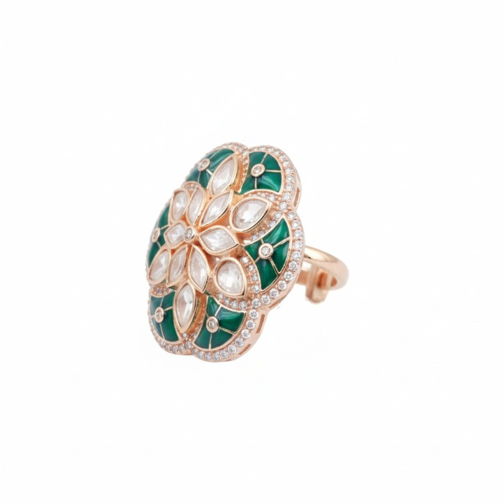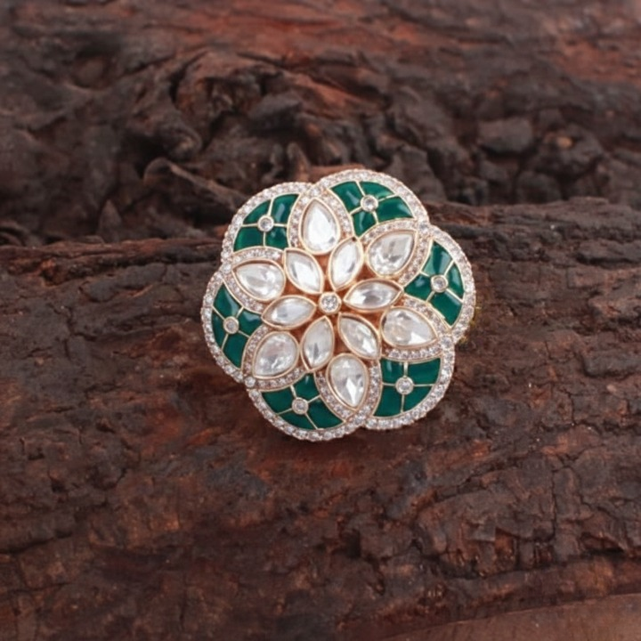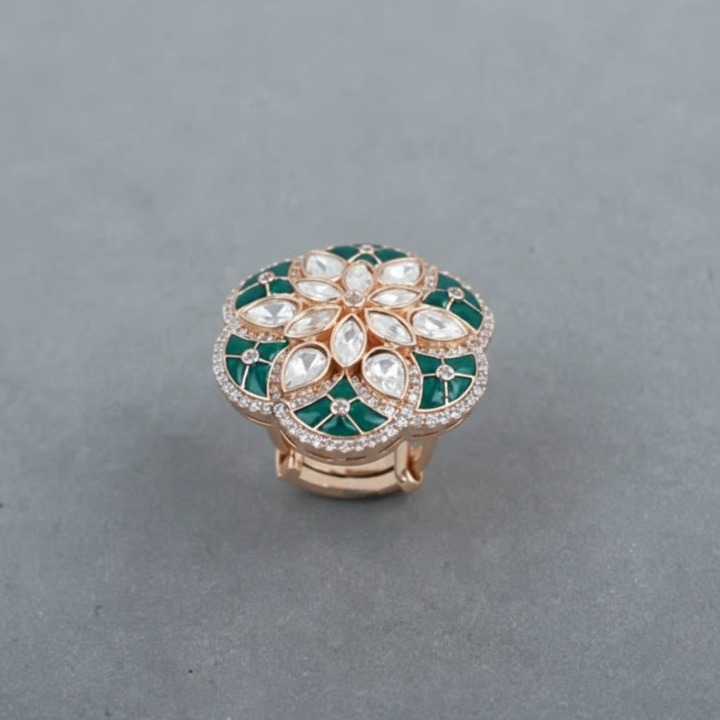 With a weight of 11 g and dimensions of 2.8 cm x 2.8 cm, it provides a comfortable fit while making a statement. The adjustable size ensures it fits most finger sizes, making it versatile for everyday wear or special occasions. Ideal for pairing with ethnic, festive, or bridal outfits.