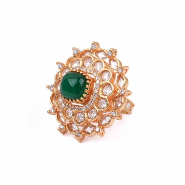Elegant gold-plated adjustable ring made from sterling silver , adorned with Kundan and imitation stones. Lightweight (12 g), stylish, and perfect for festive, wedding, or gifting occasions
