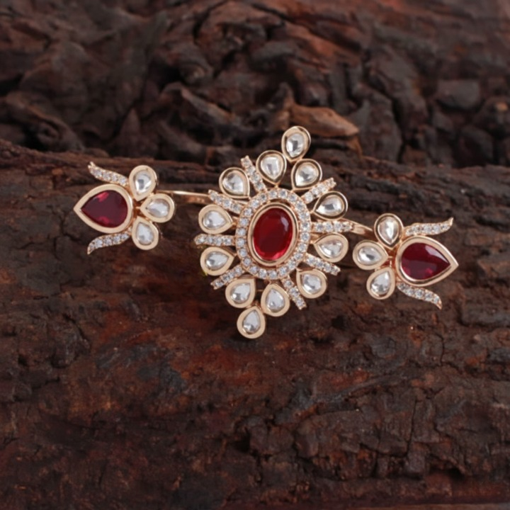 It offers a comfortable yet eye-catching fit. The adjustable size ensures it accommodates most finger sizes, making it versatile for weddings, parties, festive events, or gifting. This ring pairs beautifully with ethnic and fusion outfits alike.
