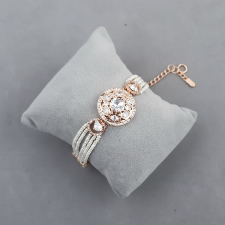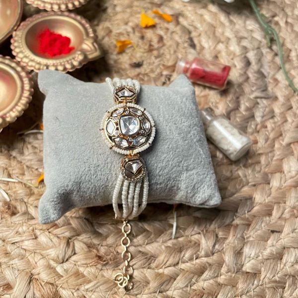 Enhance your festive and ethnic look with this stunning Gold Plated Kundan Bracelet, crafted to perfection from high-quality silver. The bracelet is plated with premium gold finish and adorned with , giving it a regal and traditional charm. Its embellished finish adds sparkle, making it an ideal accessory for weddings, festive occasions, and celebrations.