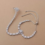 Be the first to review “Rhodium/Gold Plated CZ Hathphool Bracelet with Adjustable Ring” Cancel reply