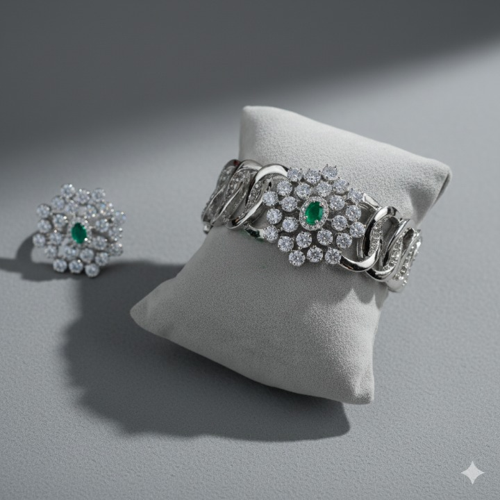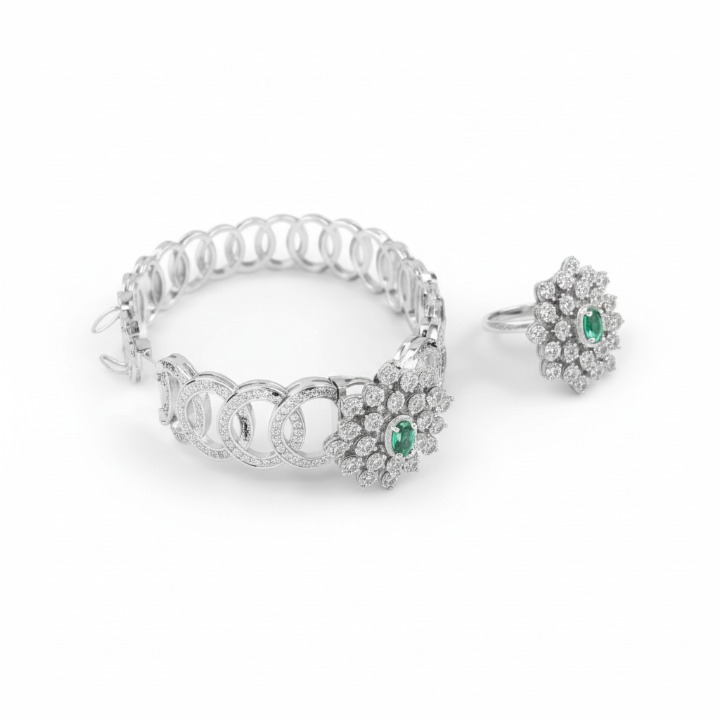 Add a touch of timeless elegance to your collection with this beautifully crafted bracelet and ring set, designed to bring sparkle and sophistication to every occasion. Made from silver and finished with a white rhodium plating, this set exudes luxury and durability. Adorned with , it offers the brilliance of real gemstones at an affordable value.