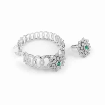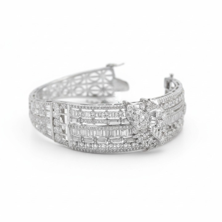 Elevate your style with this rhodium plated CZ bracelet, crafted with premium silver and adorned with. Its embellished finish makes it a perfect blend of sophistication and shine, suitable for weddings, parties, festive occasions, or everyday elegance.