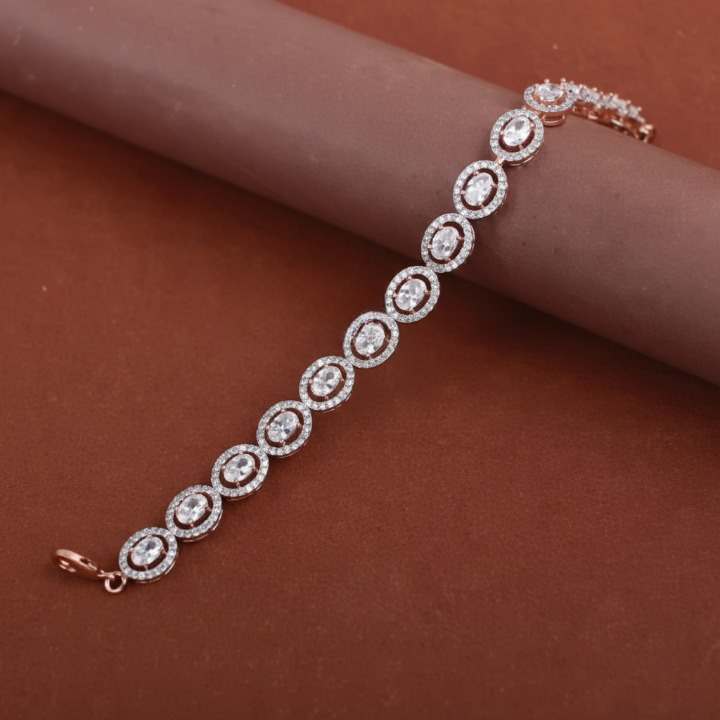 Add a touch of sophistication to your jewelry collection with this Rose Gold Plated CZ Adjustable Bracelet. Crafted from durable copper-based alloy, it features sparkling CZ and imitation stones and a finely embellished finish for a luxurious look.