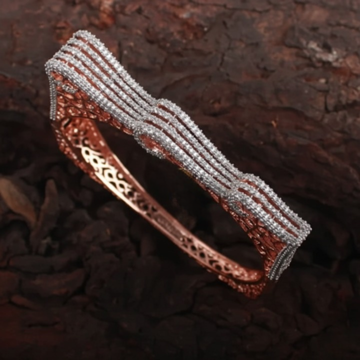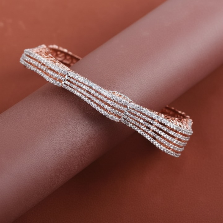 Stylish rose gold & rhodium plated CZ bracelet with embellished finish. Size 2.4, 25 g, secure lock – perfect for festive, wedding & party wear.