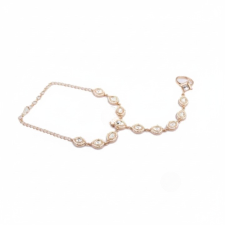 The free-size bracelet ring ensures a perfect fit for all hand sizes, while its lightweight build of just makes it comfortable for long wear. Designed to complement sarees, lehengas, anarkalis, or indo-western outfits, this Hathphool adds a royal touch to any look.