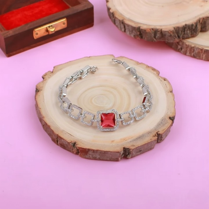 The white/rhodium plating gives it a radiant, long-lasting shine, while the embellished design ensures it stands out for special occasions. With a comfortable adjustable size, it measures 19.5 cm in length, 1.4 cm in width, and weighs 17 g, making it ideal for both casual and festive wear.