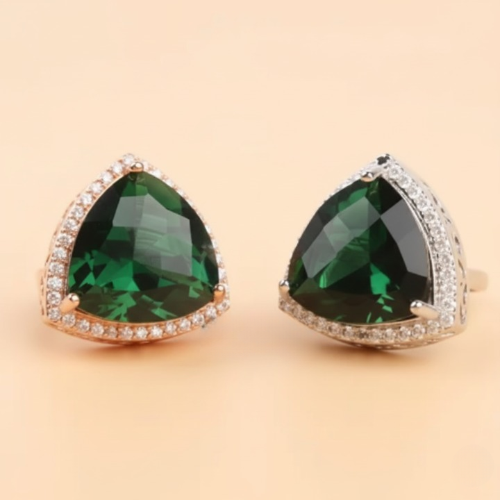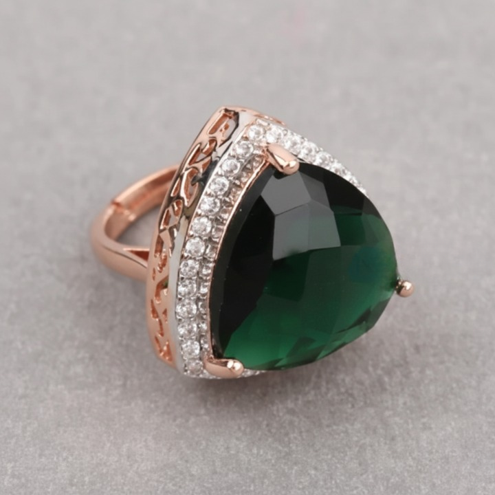 Adjustable CZ & Green Stone Embellished Ring
